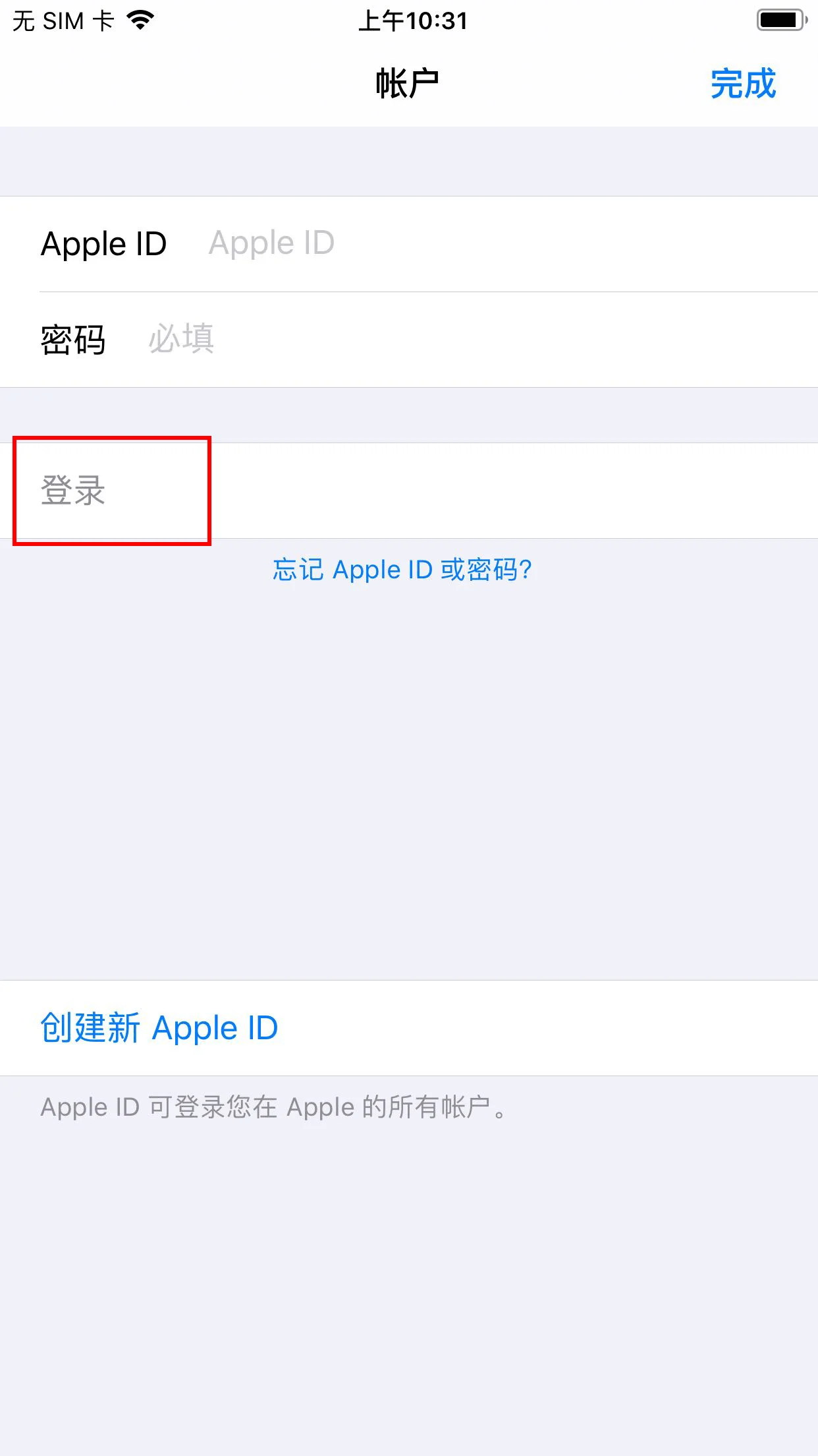 在 App Store 中登录您刚刚注册的香港 Apple ID ,当您输入完 ID 和密码之后,请点击下方的 “登录” 按钮,不要点击右上角的 “完成” 按钮。