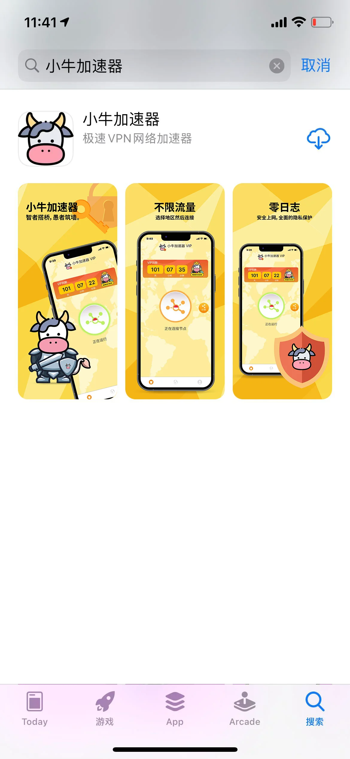 当您发现商店内容变为繁体内容后证明您已经切换到香港地区了。此时您可以在商店中自行搜索 小牛加速器 进行下载。下载完成小牛加速器后,您也可以随时把 Apple ID 的地区改回中国大陆,当然您也可以在香港商店中下载各种海外热门应用,小牛全部都能支持!